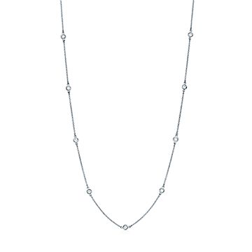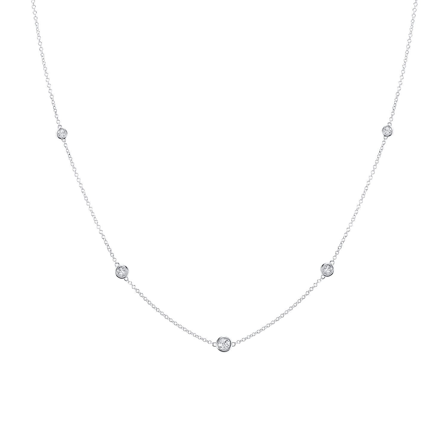 N5618W10-14k White Gold Diamond Necklace With 10 Bezel Set Diamonds Totaling 0.45ct H Color, SI3 Clarity