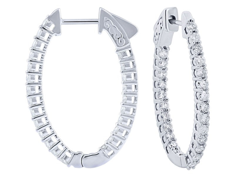 -E42W26 14k White Gold Diamond Hoop Earrings With 26 Round Brilliant Diamonds Totaling 2.79ct Of G-H Color, VS2-SI1 Clarity Oval 17mm X 20mm