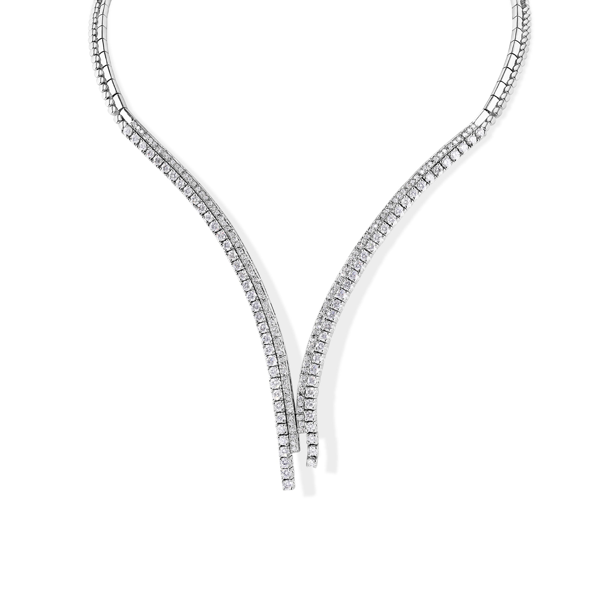 14k White Gold Diamond V Necklace With 7.62ct Diamonds Of G-H Color, VS2-SI Clarity