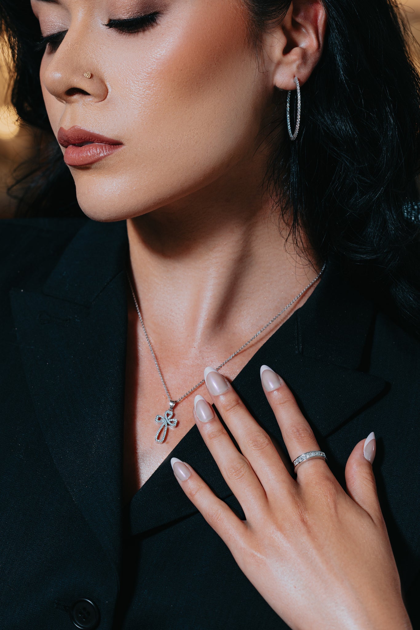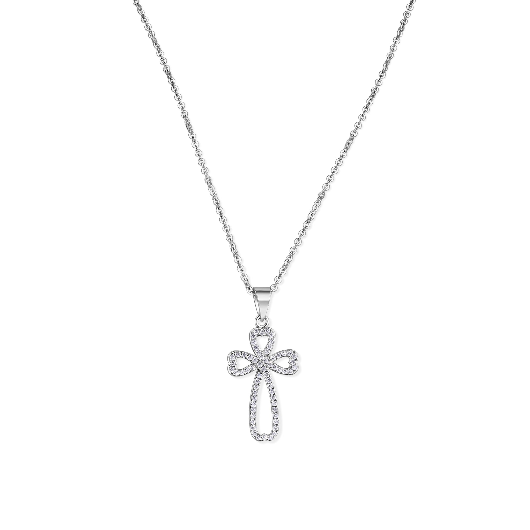 -WDCHP28CT 18k White Gold Diamond Cross Hearts Pendant With 63 Round Brilliant Diamonds Totaling 0.28ct Of F Color, VS1 Clarity With 18 Inch, 14K White Gold Rolo Chain.