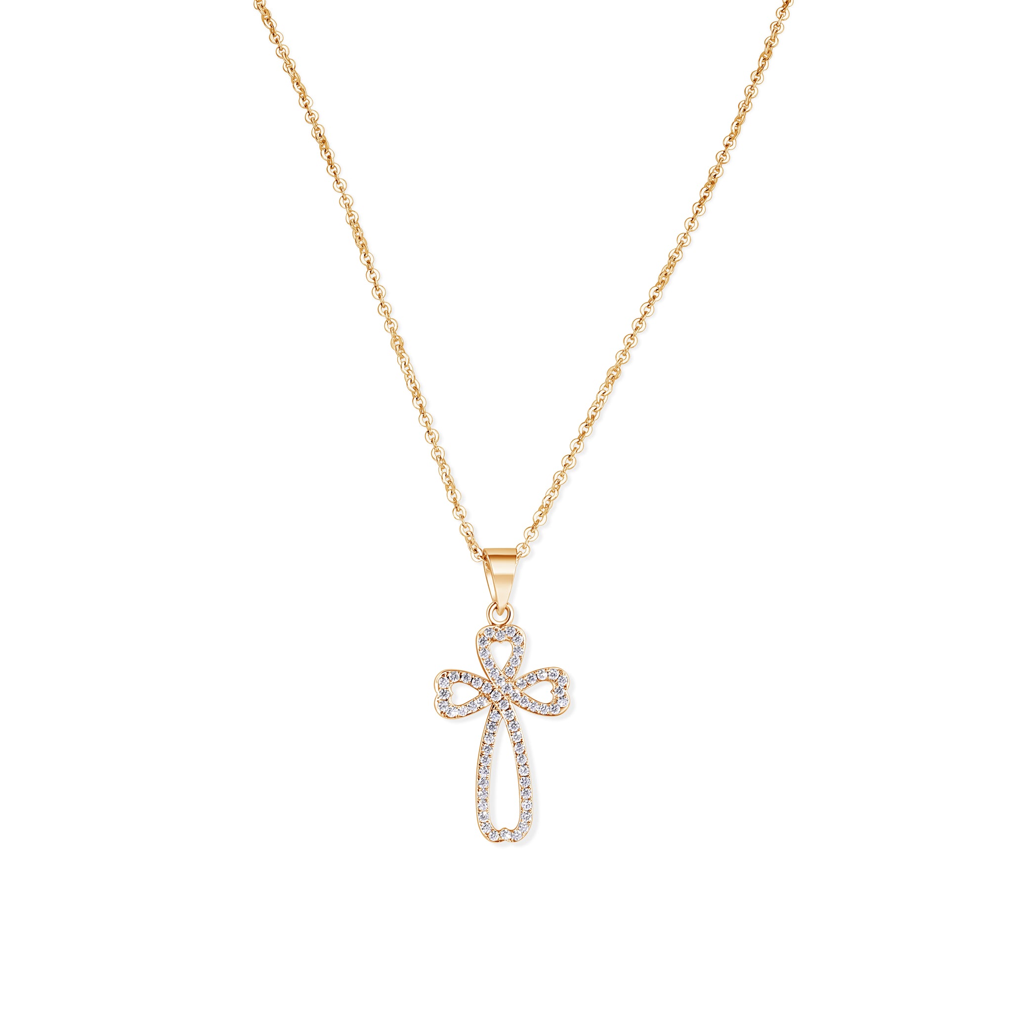-YDCHP28CT 18k Yellow Gold Diamond Cross Hearts Pendant With 63 Round Brilliant Diamonds Totaling 0.28ct Of F Color, VS1 Clarity With 20 Inches,14k Yellow Gold Diamond Cut Rolo, 1.2mm Thick