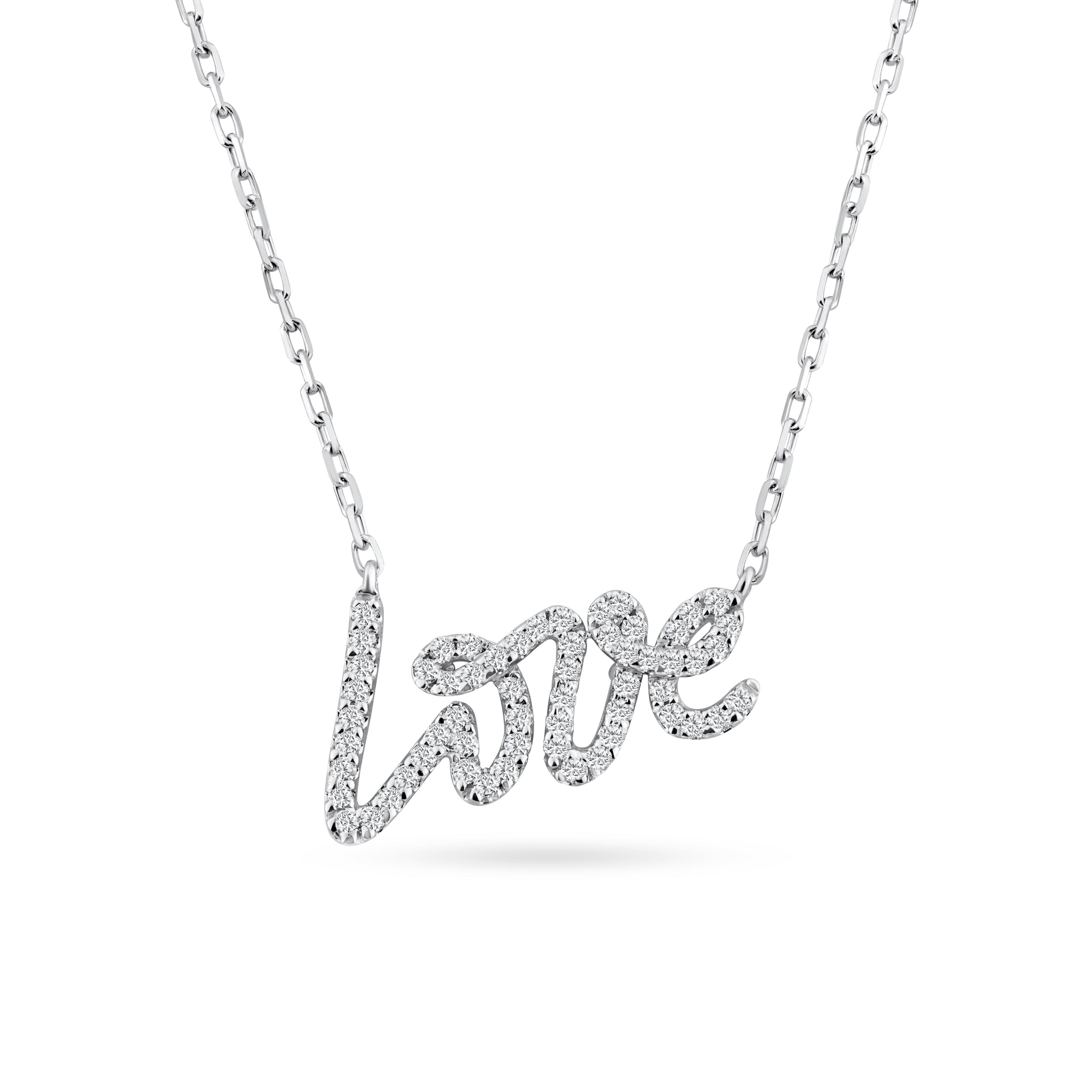 14k Gold Custom Designed Love Necklace With 59 Round Diamonds Totaling 0.39ct Of E-F Color, VS1 Clarity.