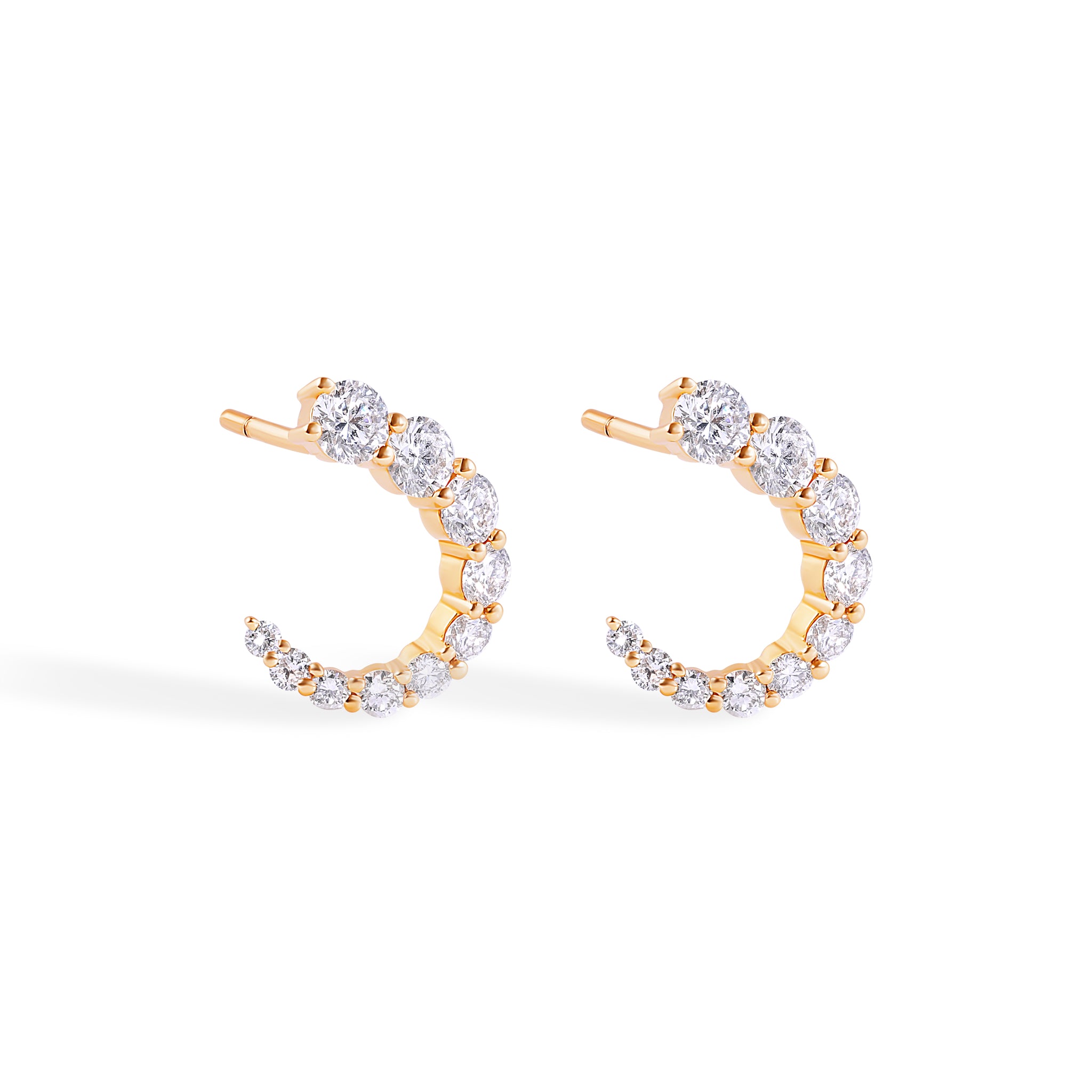 14K Yellow Gold Lunar Stud Earrings With 1.25ct Round Brilliant Diamonds Of G Color, VS1-VS2 Clarity