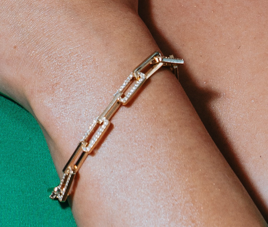 14k Yellow Gold Solid Paper Clip Bracelet With 168 Totaling 1.26ct Of E-F Color, VS1 Clarity